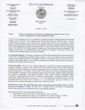 Publc Meeting: To receive comments on the Draft EIR. Thursday, November 17, 2016 at 6:00 p.m. at the Venice Foursquare Church, 1400 Rivera Ave. Across the street from the Post Office.